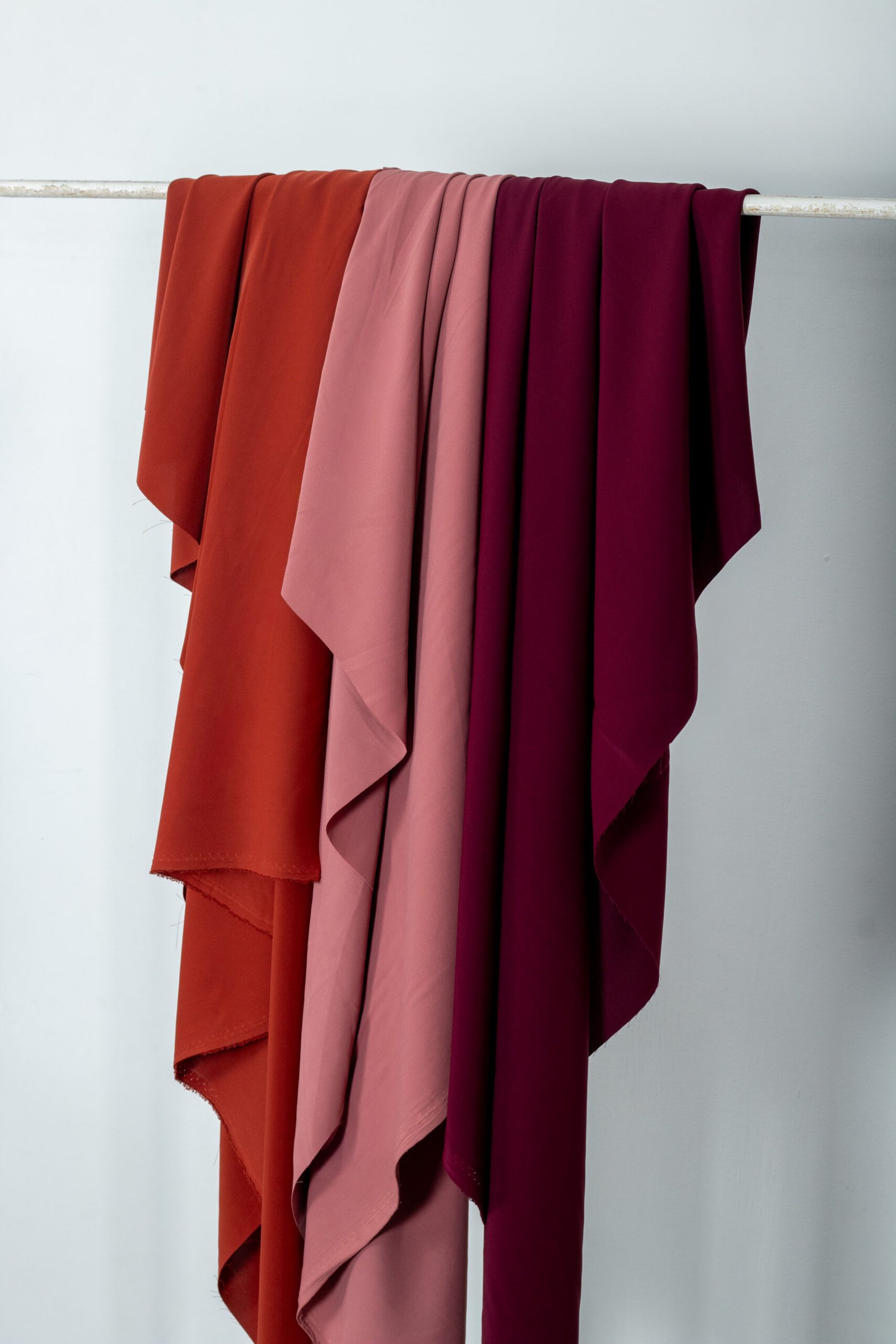 Kain Marina Silk adalah jenis kain premium dengan tampilan mewah dan tekstur halus seperti satin sutra. Memiliki karakter jatuh (flowy), lembut di kulit, adem, serta memiliki sedikit kilau elegan yang memberikan kesan glamor tetapi tetap nyaman untuk dipakai harian.